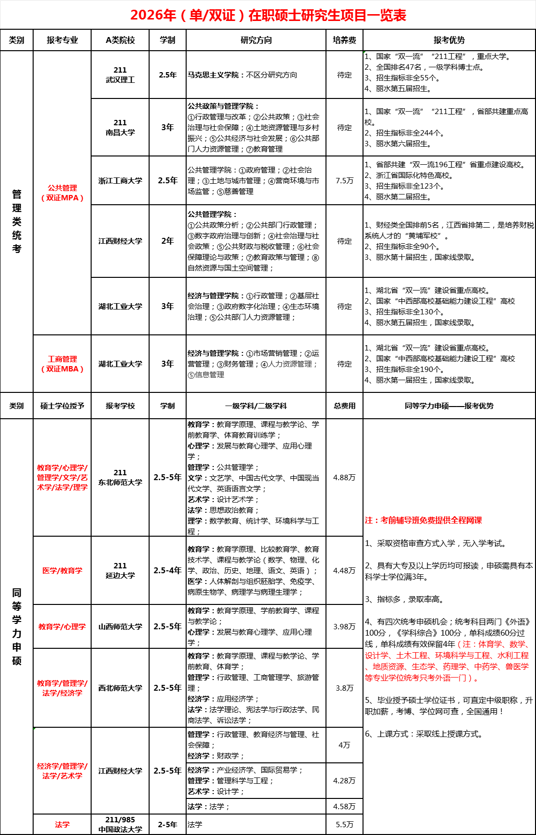 2026年(單雙證)在職碩士研究生招生項(xiàng)目總覽